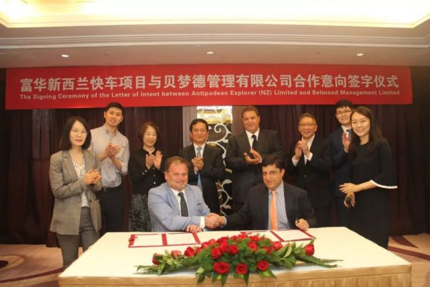 富华新西兰快车项目与贝梦德管理有限公司合作意向签字仪式6月8日在长安俱乐部举行。集团总裁赵勇与新西兰铁路局董事长格里·米勒(GregMiller)、贝梦德亚太区发展总监桑迪(Sandeep)出席签字仪式并讲话。