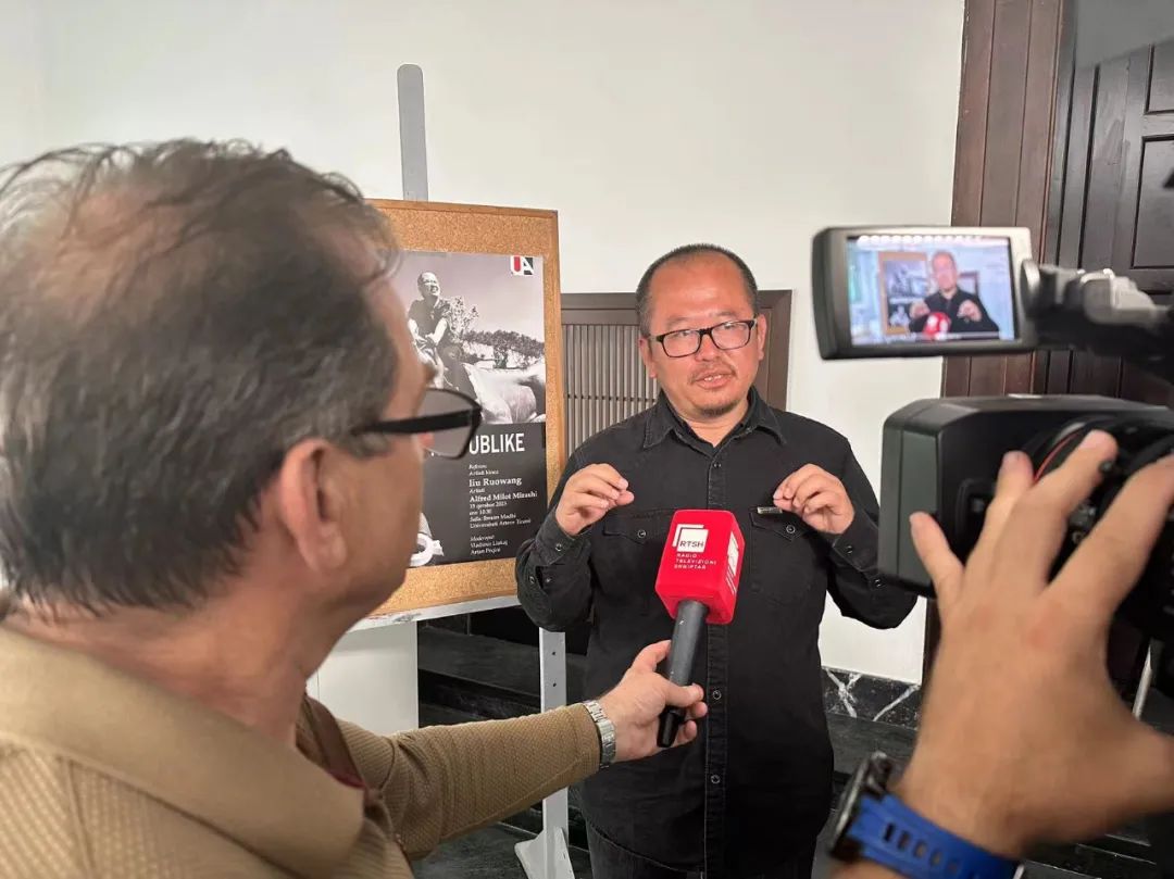 △ 刘若望在地拉那艺术大学演讲并接受记者采访