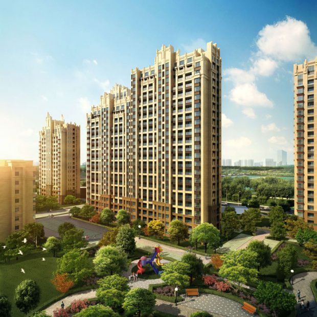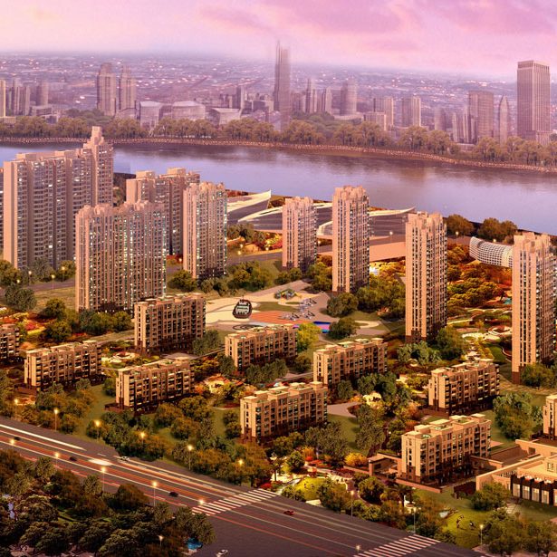 富华国际社区,将东方都会的唯美与西方城市的繁华完美结合,以上海外滩为原型,结合宁国山水城市特色,将水景与建筑完美融合,并采用新古典建筑风格,从深 层次传承ART-DECO典雅、向上、大气的精神内涵。利用整体凹凸形成高耸挺拔,简洁流畅的竖向线条,彰显高贵而内敛的优雅气质,演绎出当代都会建筑的 高贵与优雅。